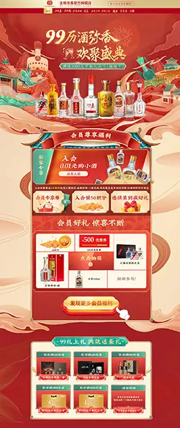 五粮浓香 食品 酒水 国潮 99划算节 天猫首页活动专题页面设计