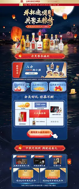 五粮浓香 食品 酒水 中秋节 天猫首页活动专题页面设计