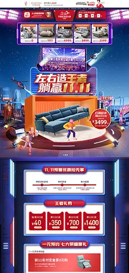 左右沙发 家装建材 装修装饰 双11预售 双十一来啦 天猫首页活动专题页面设计