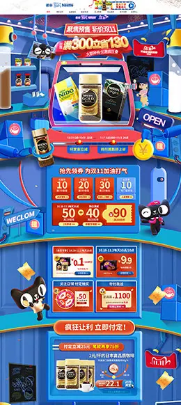 Nestle雀巢 食品 零食 酒水 双11预售 双十一来啦 天猫首页活动专题页面设计