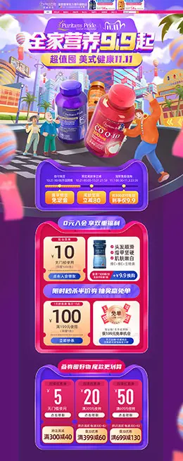 普丽普莱 营养保健食品 滋补膳食 医药 双11预售 双十一来啦 天猫首页活动专题页面设计
