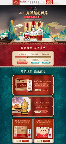 五粮液 食品 零食 酒水 双11预售 双十一来啦 天猫首页活动专题页面设计