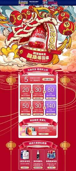 pipingrock 营养保健食品 滋补膳食 医药 新年 年货节 天猫首页活动专题页面设计