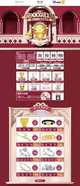 周六福 珠宝首饰 饰品 双12 双十二 天猫首页活动专题页面设计