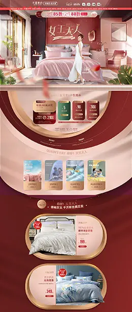 水星家纺 家纺床垫 床品 38女王节 天猫首页活动专题页面设计