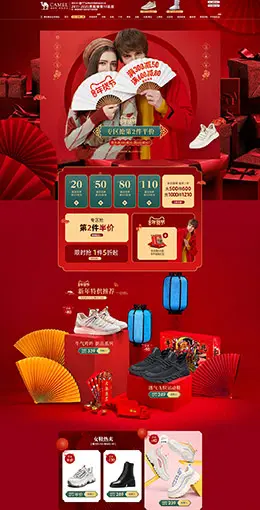 骆驼服饰 女鞋 男鞋 鞋子 新年 年货节 天猫首页活动专题页面设计