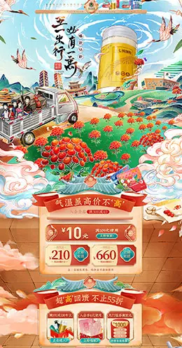 云南白药 家居用品 日用百货 国潮国风 55吾折天 天猫首页活动专题页面设计