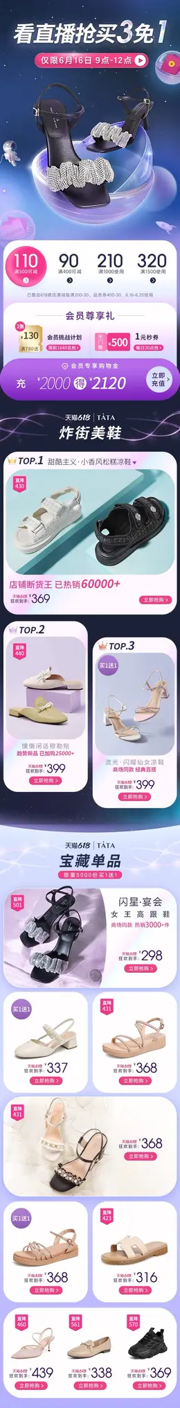 他她Tata 女鞋 鞋子 618年中大促 手机端 M端活动首页设计