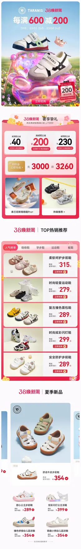 泰兰尼斯童鞋 38焕新周 女王节 活动首页设计
