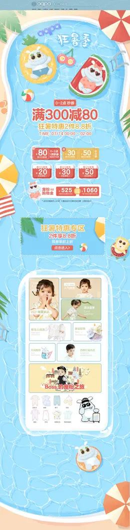 aqpa 母婴用品 儿童玩具 童装 夏天 狂暑季 活动首页页面设计