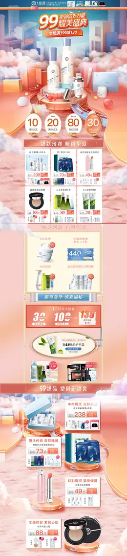 十月天使 美妆 彩妆 化妆品 99划算节 活动首页页面设计
