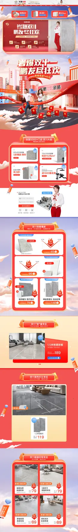 东鹏瓷砖 家装建材 装修装饰 双11预售 双十一来啦 活动首页页面设计