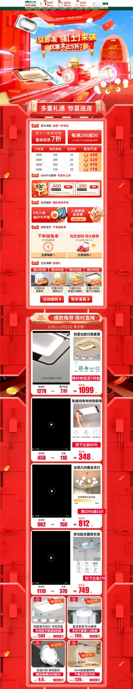 雷士 灯具 灯饰照明 家装建材 家具 双11预售 双十一来啦 活动首页页面设计