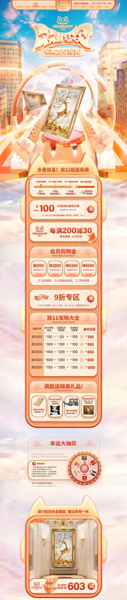 盘古大观 家装建材 装修装饰 装饰画 双11预售 双十一来啦 活动首页页面设计