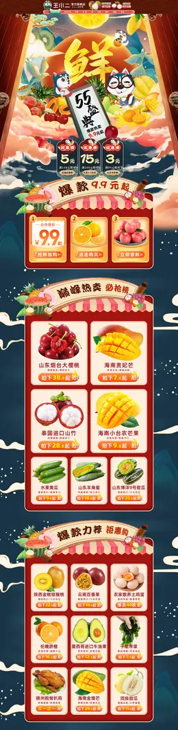 王小二 食品 零食 水果 55划算节 活动首页页面设计