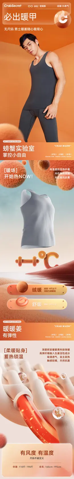 螃蟹秘密保暖背心男士无袖内衣 详情页设计