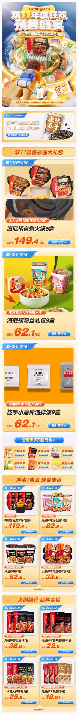 海底捞 食品 火锅 双11预售 双十一来啦 手机端 M端活动首页设计