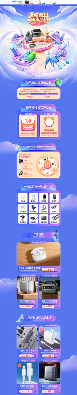 绿联数码 家电 3C数码 家用电器 双11预售 双十一来啦 活动首页页面设计