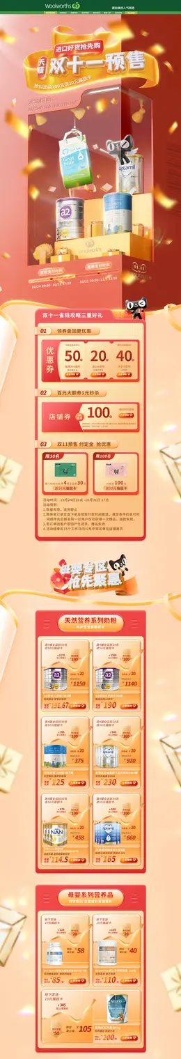 Woolworths 母婴用品 儿童玩具 双11预售 双十一来啦 活动首页页面设计