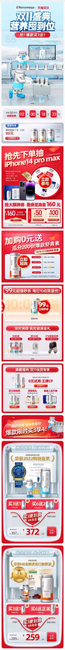 Noromega 健康保健食品 保健品 双11预售 双十一来啦 手机端 M端活动首页设计