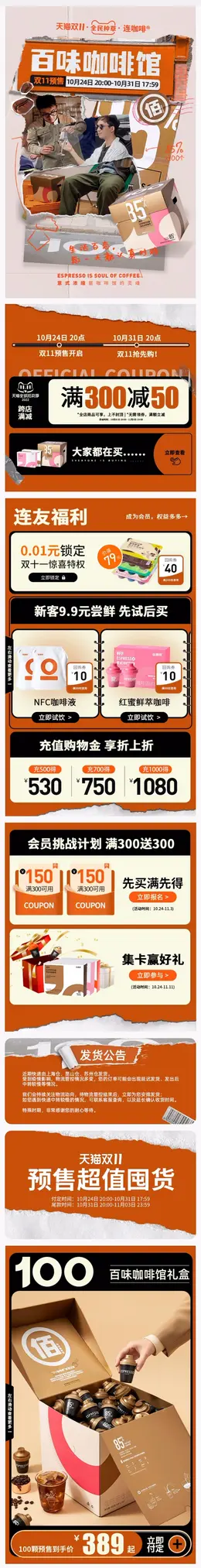 连咖啡 食品 零食 双11预售 双十一来啦 手机端 M端活动首页设计