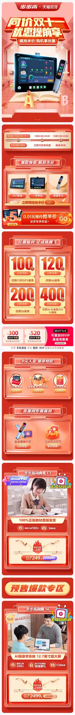 步步高智能教育 数码产品 双11预售 双十一来啦 手机端 M端活动首页设计
