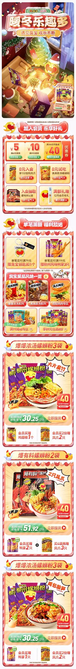 臭宝 食品 美食 螺蛳粉 双旦礼遇季 圣诞节 手机端 M端活动首页设计