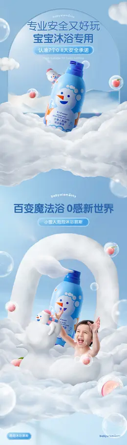 婴元素泡多多小雪人婴儿沐浴露 详情页设计
