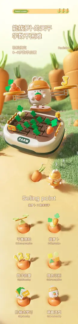 蒙氏儿童益智早教兔子拔萝卜玩具 母婴玩具详情页设计