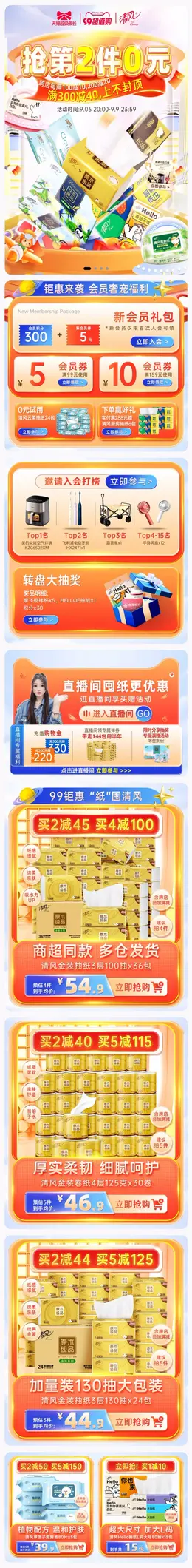 清风 家居用品 日用百货 纸巾 纸品 99划算节 99超值购 活动首页页面设计