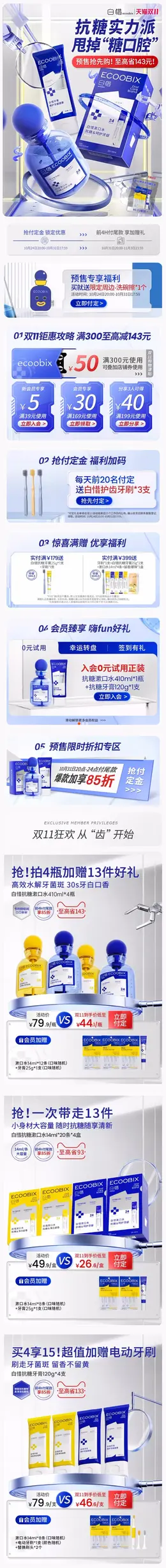 白惜 日用品 漱口水 牙膏 双11预售 双十一大促活动首页设计
