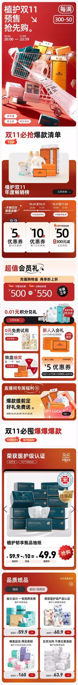 植护 纸品 抽纸 日用品 百货 双11预售 双十一大促活动首页设计