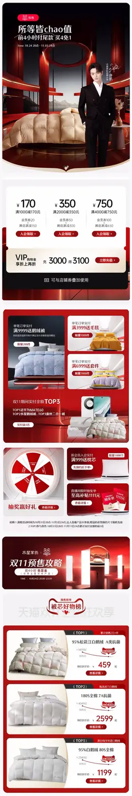 水星家纺 床上用品 四件套 双11预售 双十一大促活动首页设计