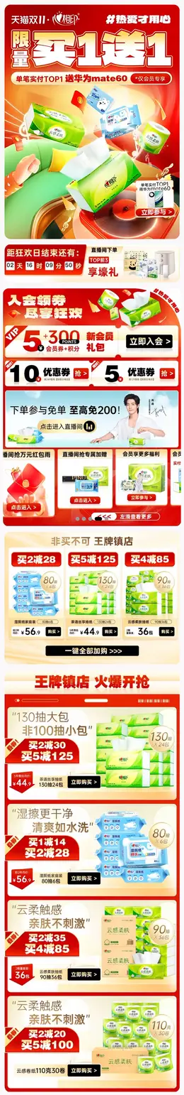心相印 纸品 抽纸 湿巾 日用百货 双11预售 双十一大促活动首页设计