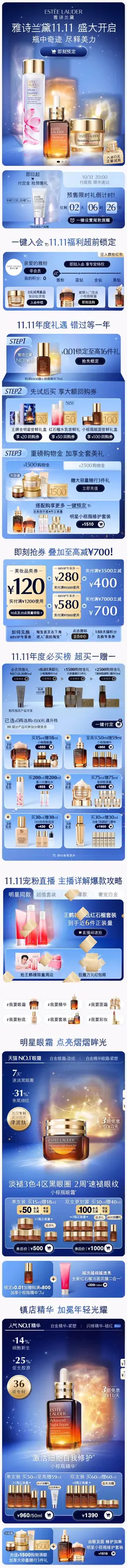 Estee Lauder雅诗兰黛 美妆 彩妆 化妆品 双11预售 双十一大促活动首页设计
