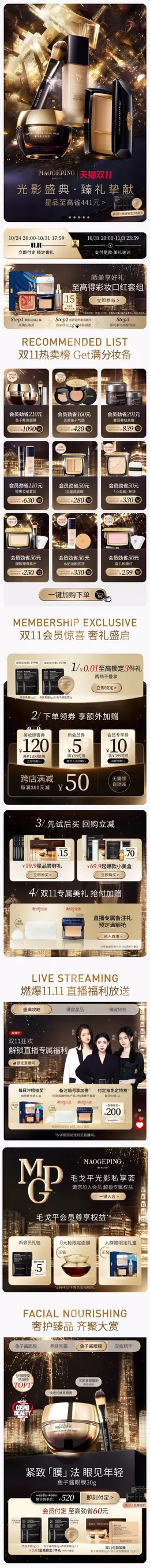MAOGEPING毛戈平 美妆 彩妆 化妆品 黑金高端 双11预售 双十一大促活动首页设计
