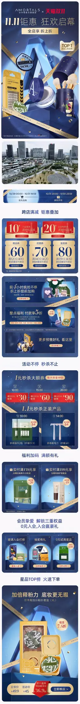 AMORTALS尔木萄 美妆 彩妆 化妆品 双11预售 双十一大促活动首页设计