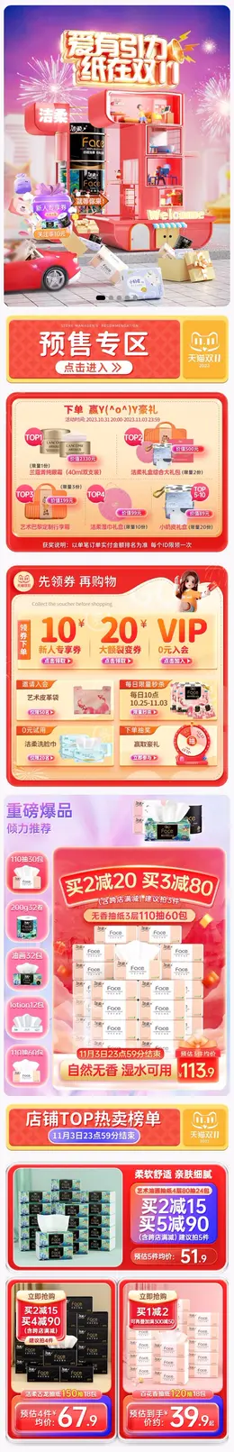 洁柔 纸品 抽纸 湿巾 日用百货 双11预售 双十一大促活动首页设计