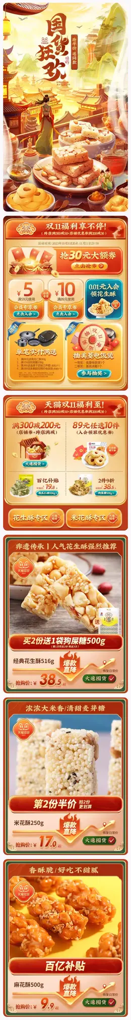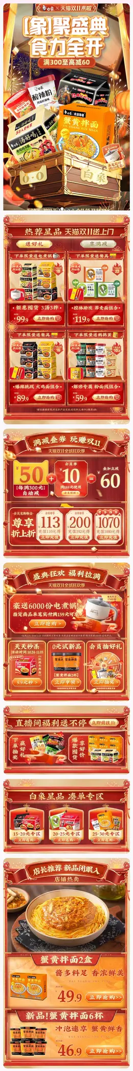 白象 食品 方便食品 休闲食品 国潮国风 双11预售 双十一大促活动首页设计