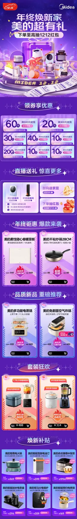美的小家电 数码 电器 年终好价节 双12 大促活动首页设计