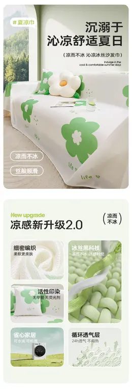 花蕊公主凉感冰丝沙发巾 详情页设计