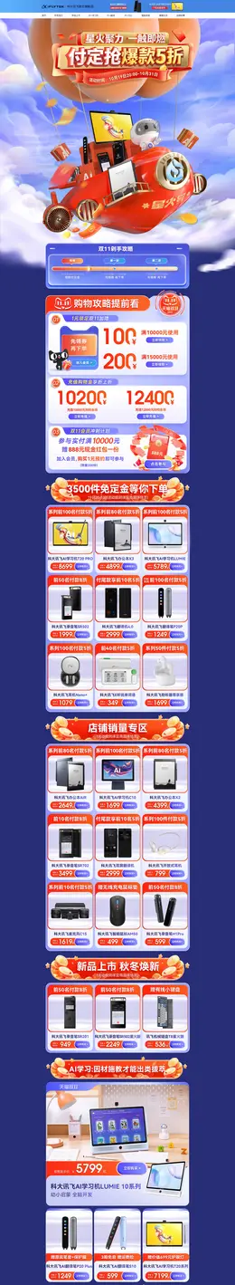 科大讯飞 数码产品 儿童学习机 平板电脑 双11预售 双十一大促活动首页设计