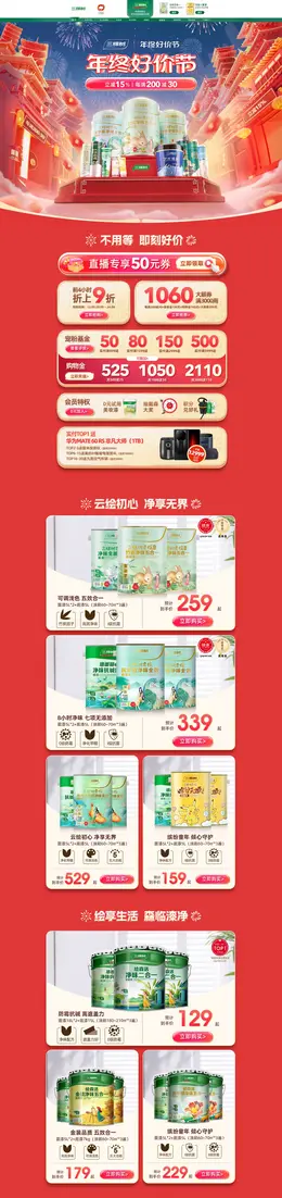 三棵树 油漆 家装建材 装修装饰 年终好价节 双12 大促活动首页设计
