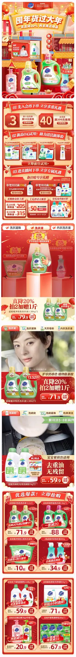超能 洗衣液 日用百货 国潮 国风 新年 年货节 大促活动首页设计