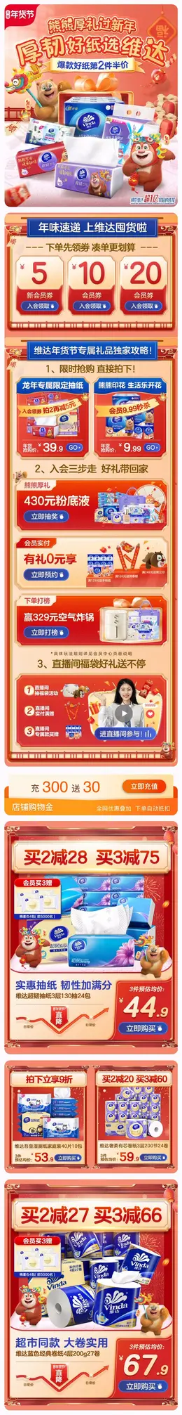 维达 纸巾 湿纸巾 日用百货 国潮 国风 新年 年货节 大促活动首页设计