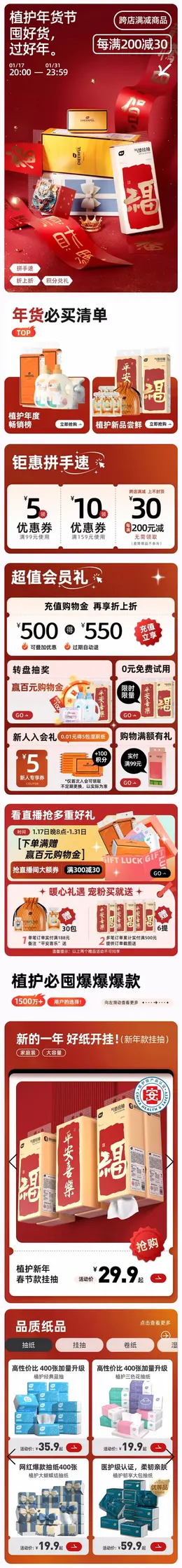 植护 纸品 抽纸 日用品 百货 国潮 国风 新年 年货节 大促活动首页设计