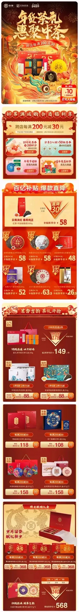 中茶 茶叶 茶饮 国潮 国风 新年 年货节 大促活动首页设计