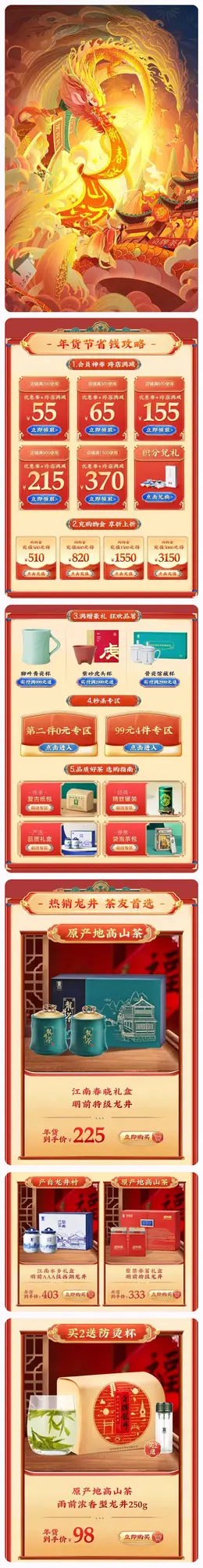 贡牌茶叶 食品 国潮 国风 新年 年货节 大促活动首页设计