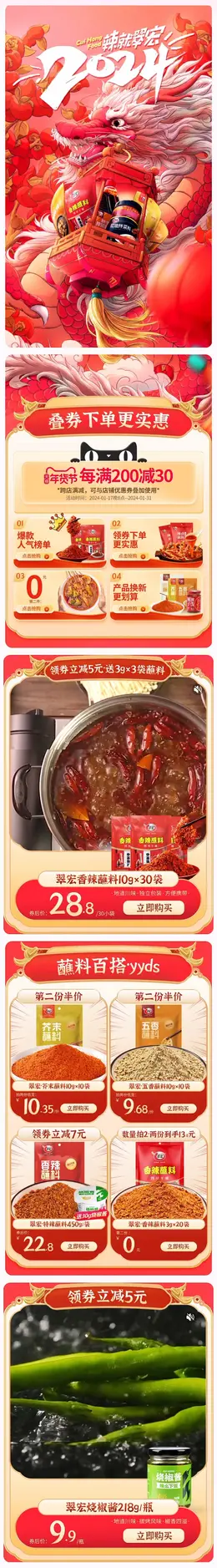 翠宏 食品 零食 调味料 手绘插画 国潮 国风 新年 年货节 大促活动首页设计