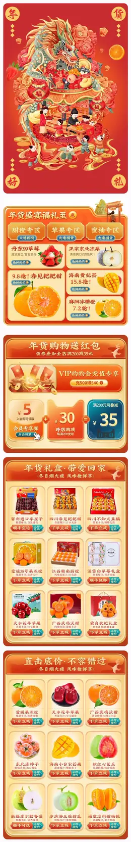 甘福园 食品 水果 生鲜 国潮 国风 新年 年货节 大促活动首页设计